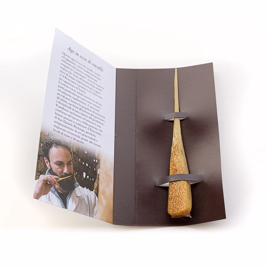 Un ago in Osso di cavallo per percepire l’aroma del Prosciutto San Daniele tramite la puntatura.