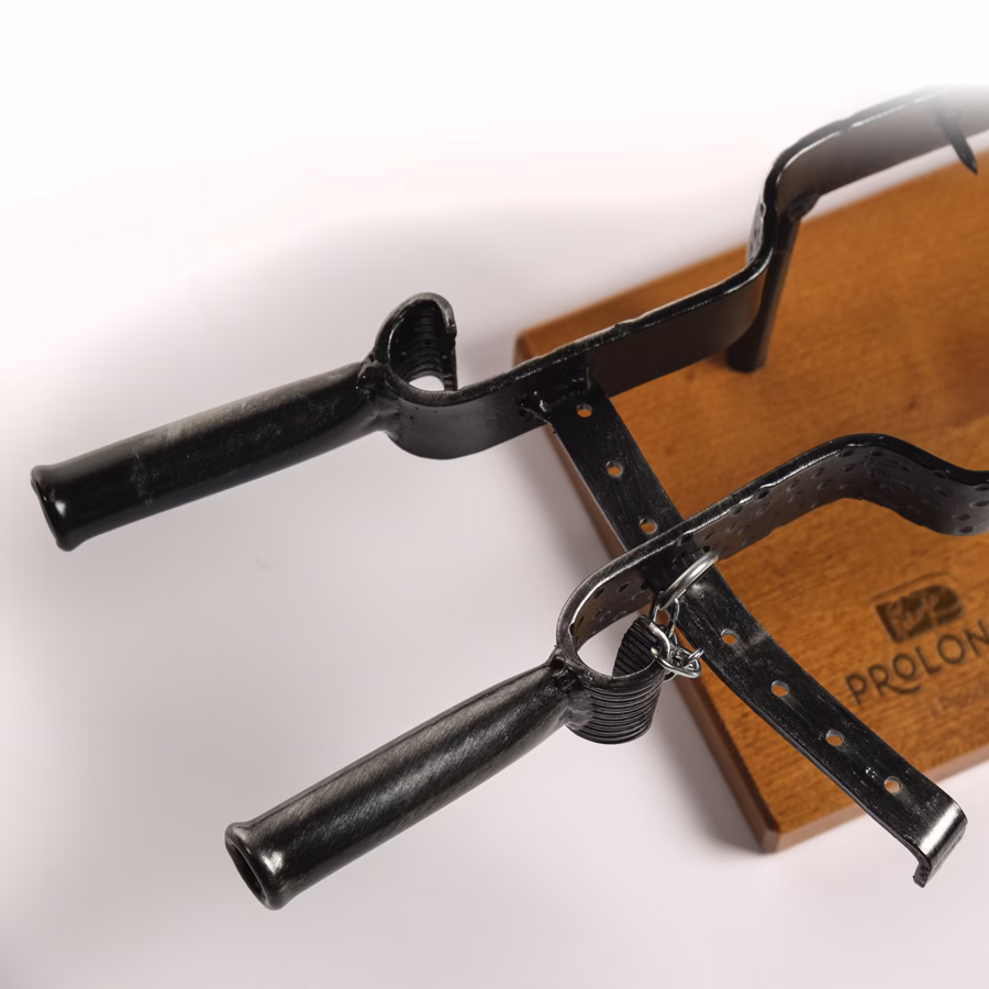 Una raffinata morsa in ferro battuto è il giusto supporto che non può mancare per valorizzare al meglio il Prosciutto con osso Prolongo.